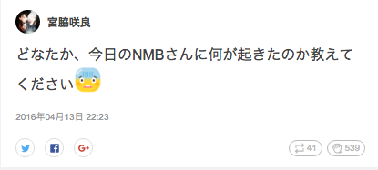 당시 남바의 투탑 인기멤이였던 와타나베 미유키가 졸업 발표를 하자 올라온 SNS