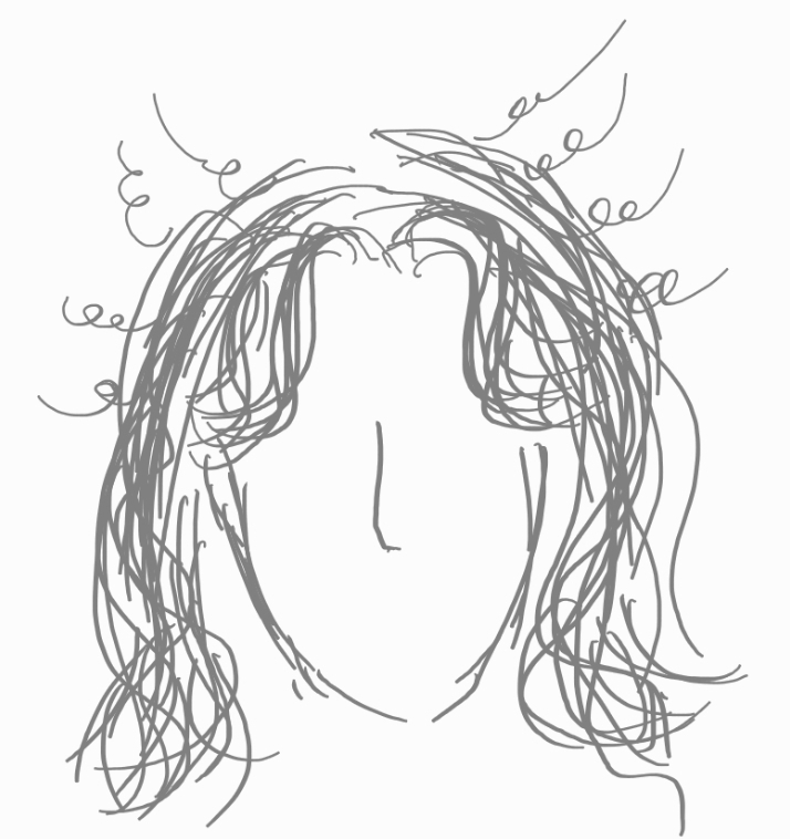 머리는 중간중간 곱슬거리고 끝도 지 멋대로 휘고