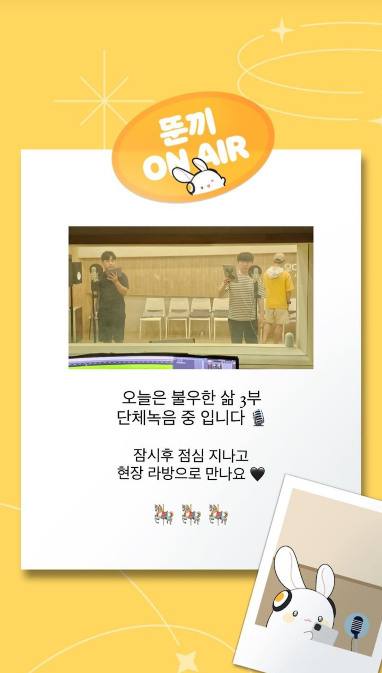 | 💛 | 인스타스토리|오늘 뚠끼 레코딩룸은 늑석 2부 단체 녹음중 🎙️ | |||