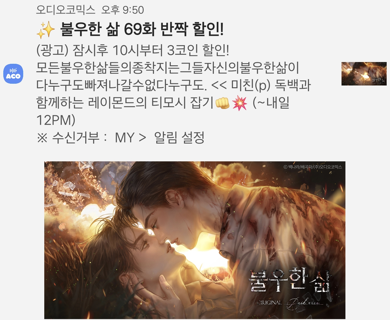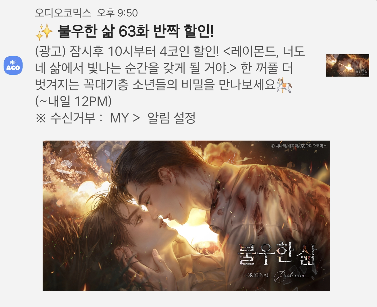| 22:00 | 💛 | 불우한 삶 63화 4코인 반짝 할인! (~내일 12PM) | ||