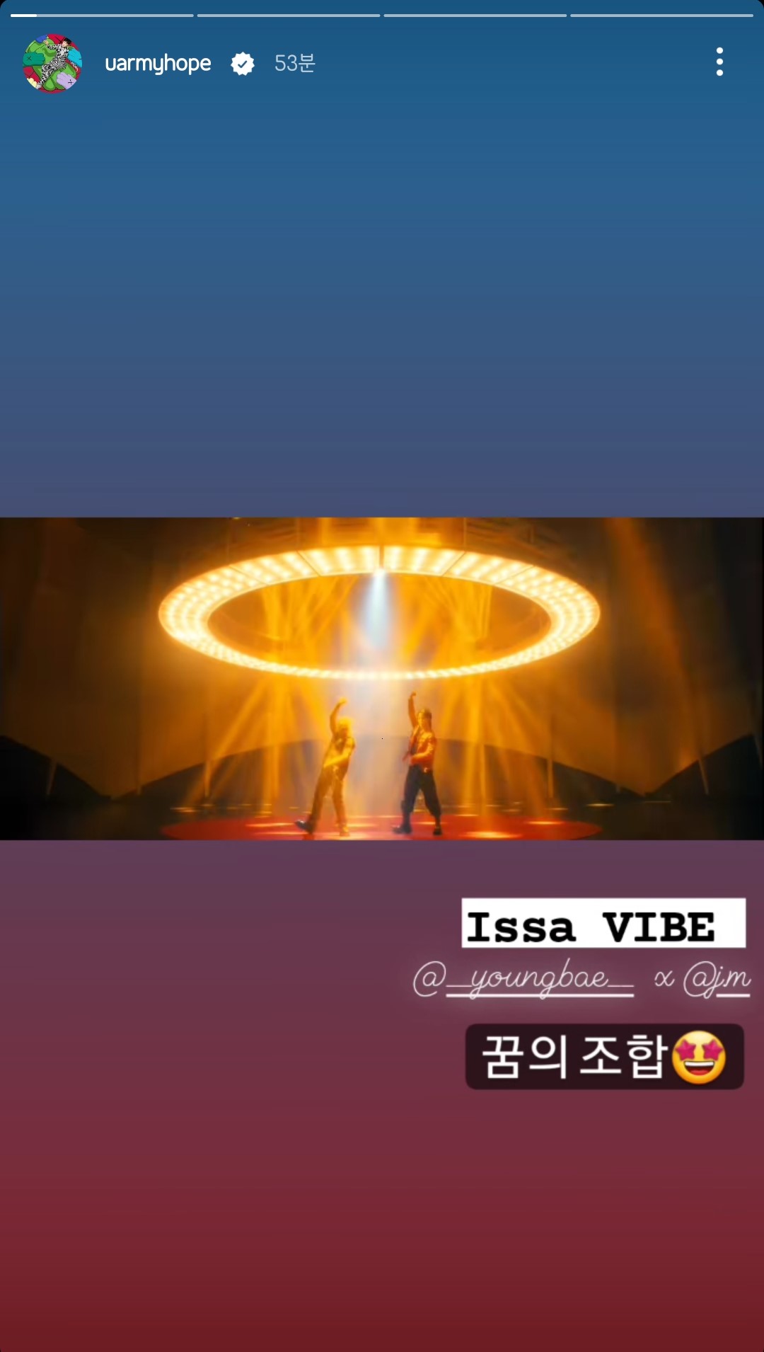 | 19:24 | 인스타 | @uarmyhope With 지민 | 🐥 | |