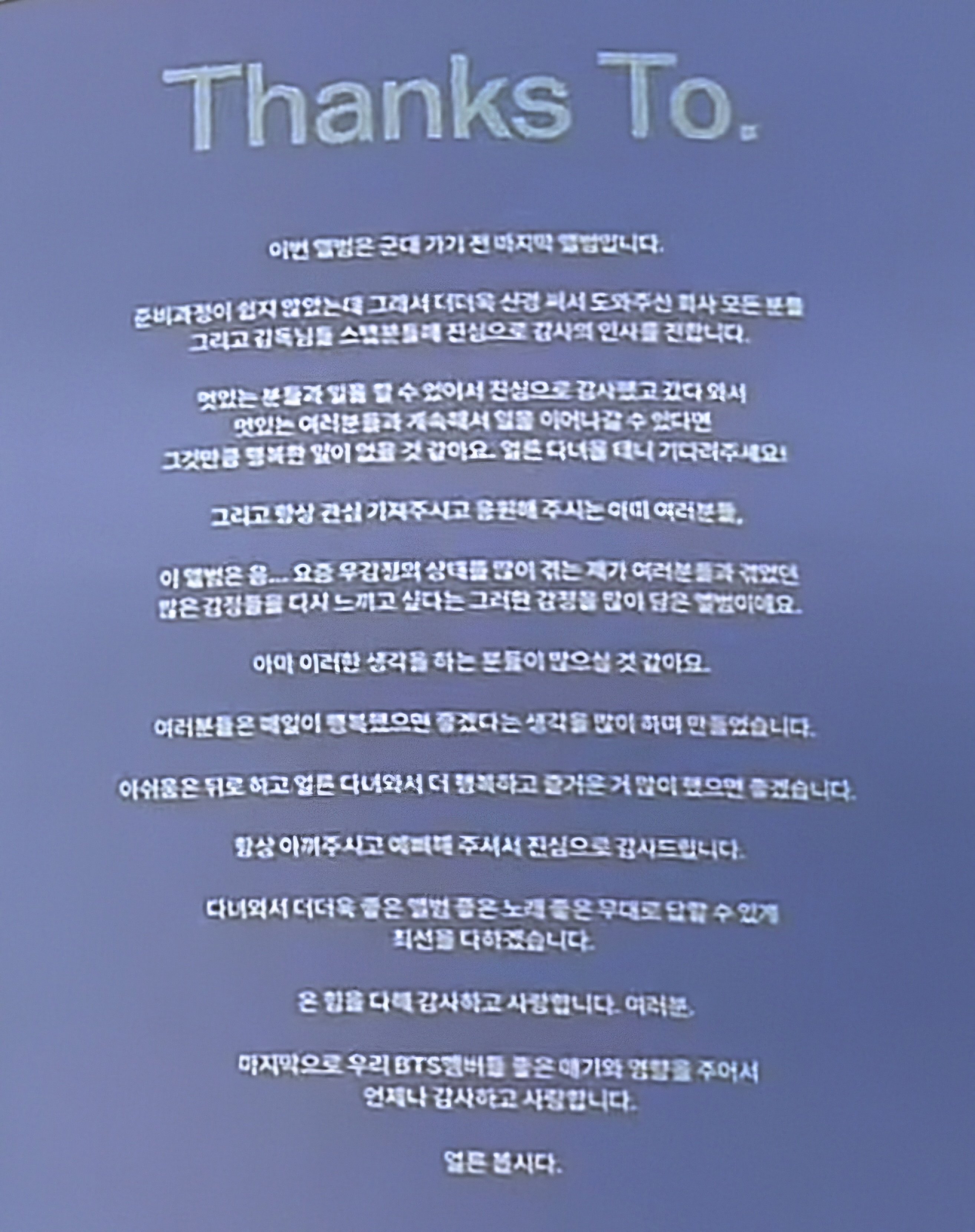 마지막으로 우리 BTS 멤버들 좋은 얘기와 영향을 주어서