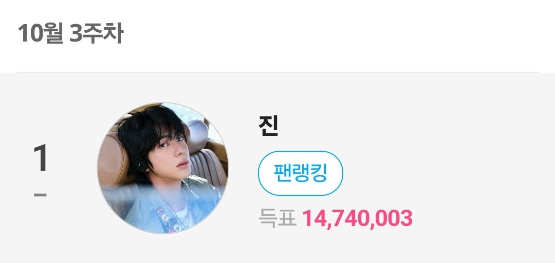 - 팬앤스타 11월 4주차 솔로 투표 석진이 1위💖 (10주 연속 1위)