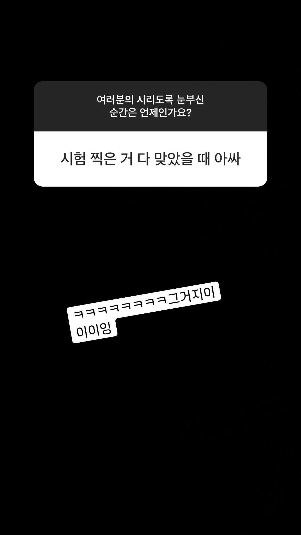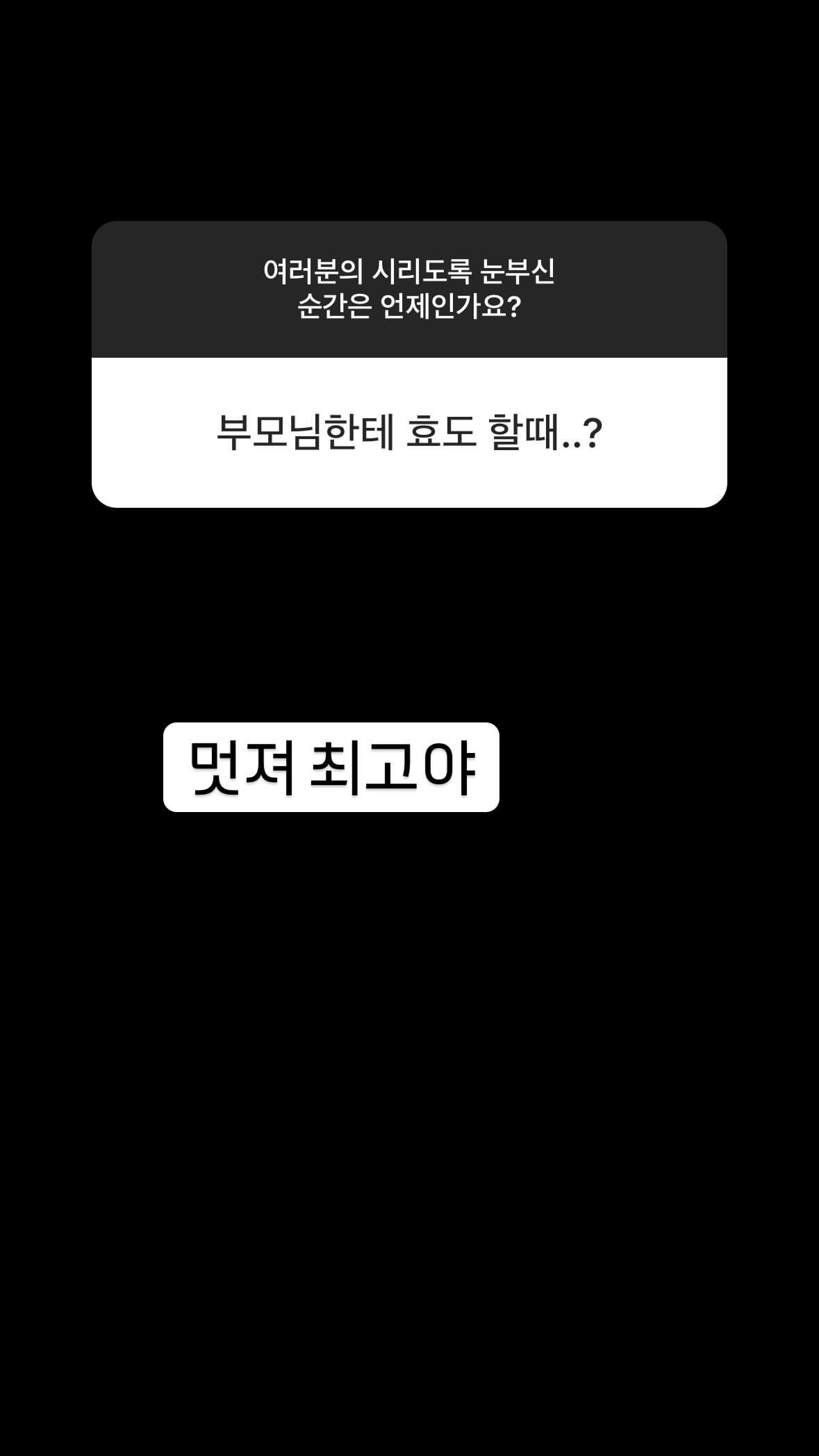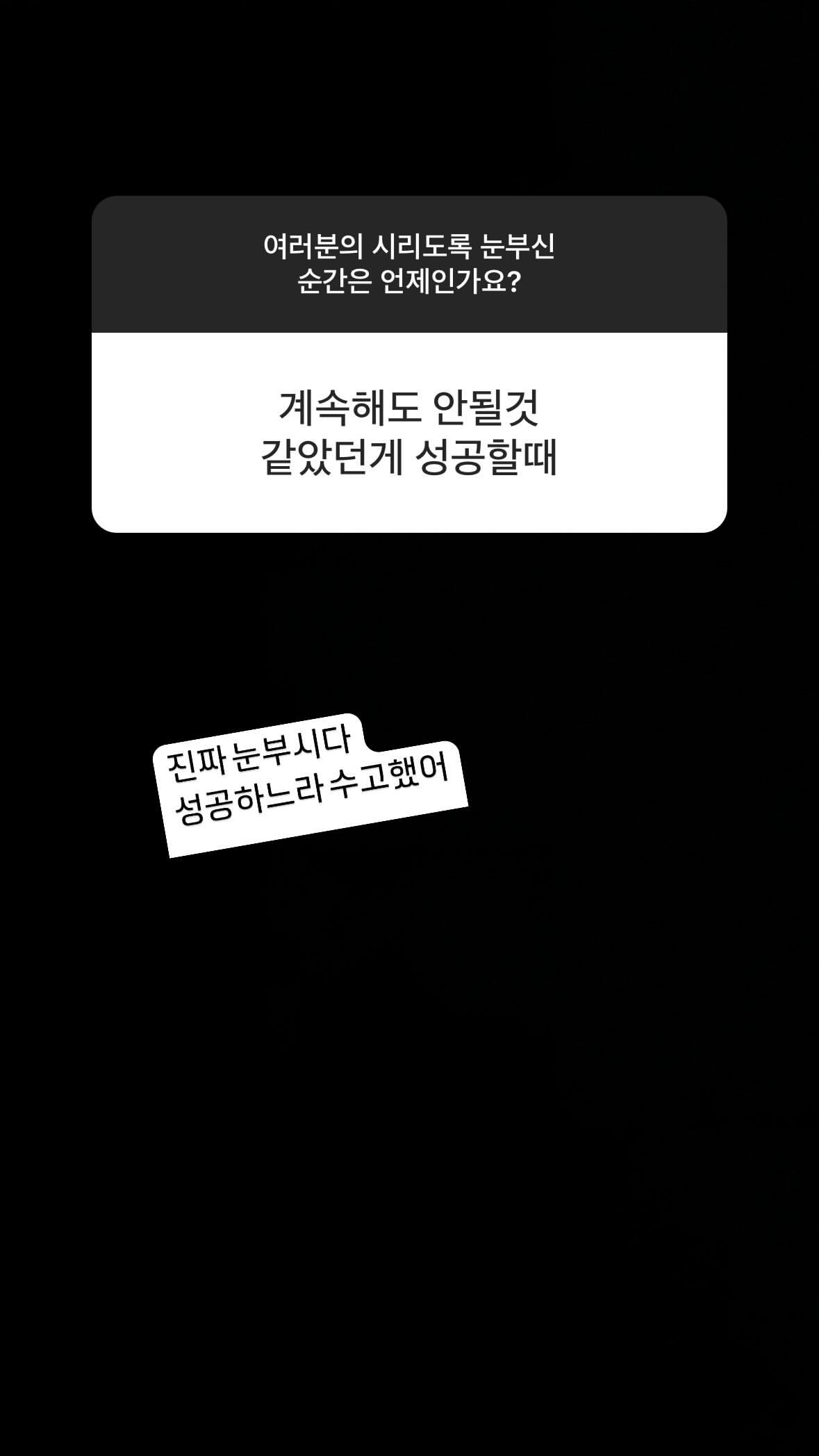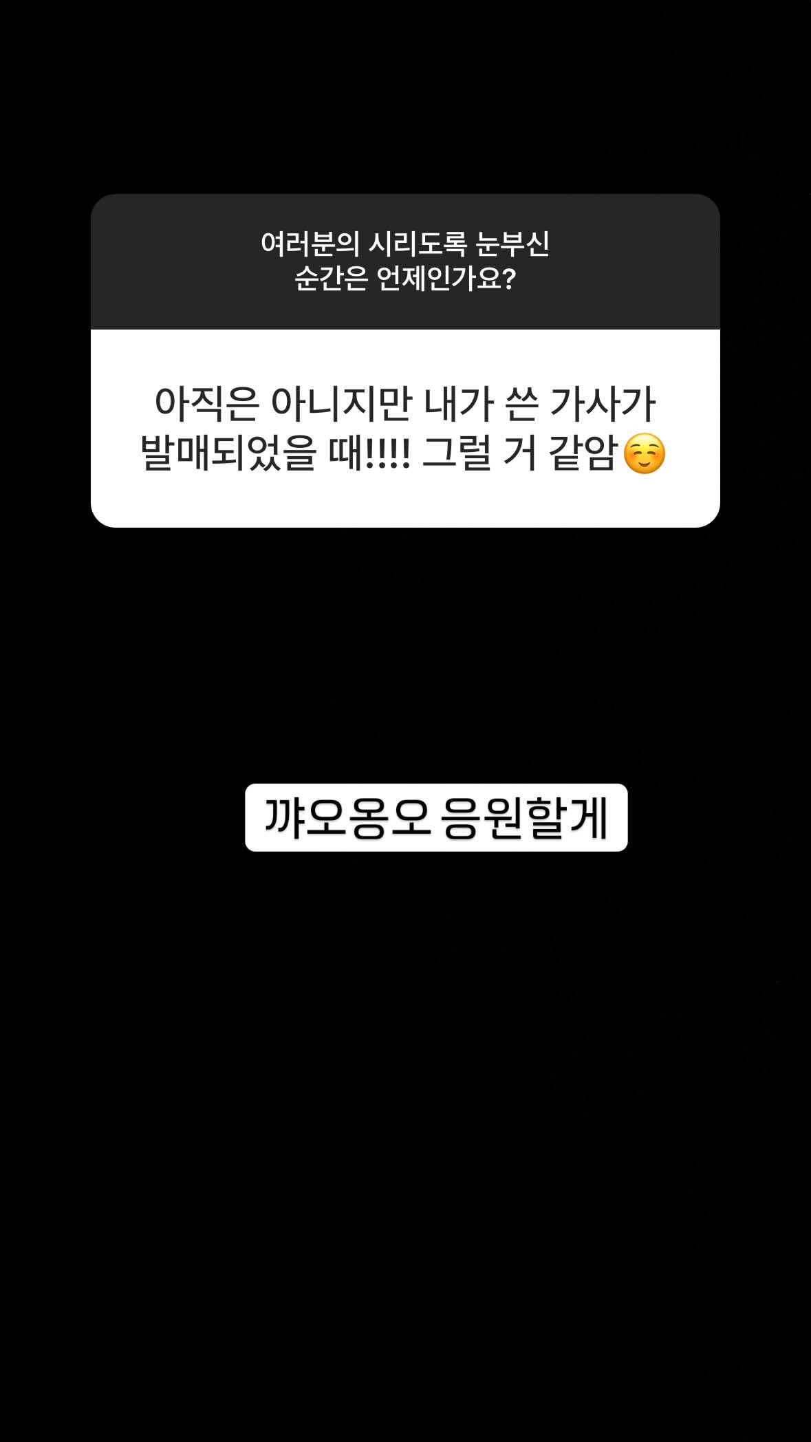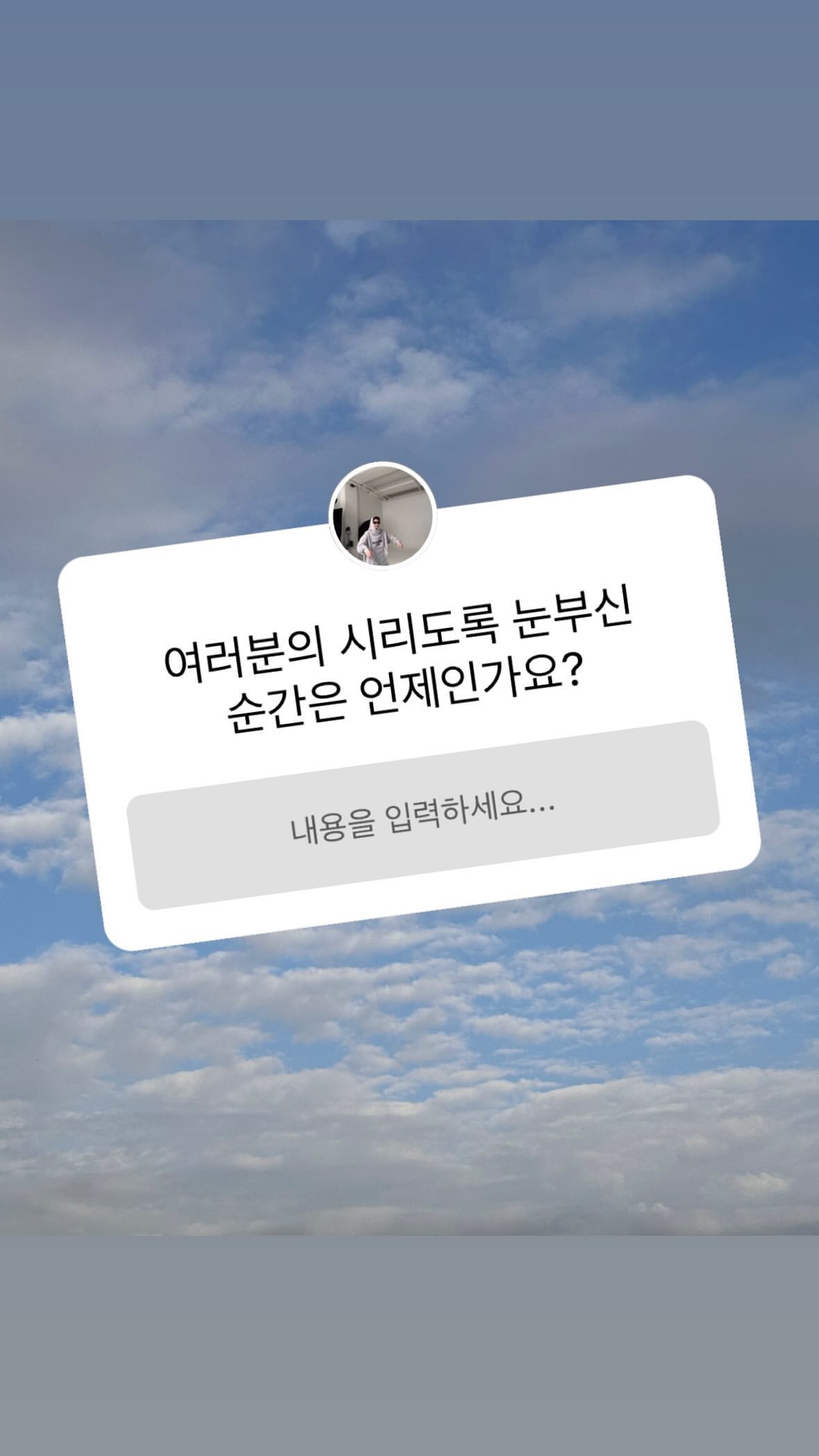 | - | 도토리 | @do0_nct 인스타그램 스토리 무물 └ 여러분의 시리도록 눈부신 순간은 언제인가요? └ ☺️ └ 그렇긴 하지... └ 진짜 설레일 때야 └ 안녕이라고 말하지마 흑 └ 맞지맞지 └ 레스고 └ 진짜 눈부시다 성공하느라 수고했어 └ ㅋㅋㅋㅋㅋㅋㅋㅋㅋ그거지이이이잉 └ 허허허허허 └ 멋져 최고야 └ 추카해애애애애애애애애애앵 └ 롸? └ 롸롸?? └ 그렇게 된다ㅏㅏㅏ └ 꺄오옹오 응원할게 └ └ 오웈ㅋㅋㅋㅋㅋ └ 다들 천재야 └ 꺅 └ 여러분의 시리도록 눈부신 모든 순간을 응원하는 음악이길...@ |