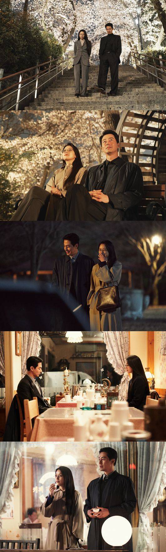 먼저, 어딘가 모르게 살짝 어색하지만 상기된 표정으로 벚꽃이 만개한 공원을 거니는 미현과 두식의 모습이 담긴 벚꽃길 데이트 스틸은 보는 것만으로도 설렘을 느끼게 한다.