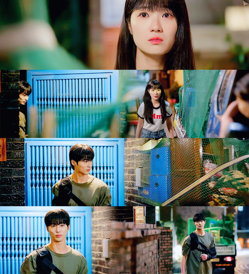 솔이를 뒤쫓으려던 때 스태프가 나타나 수상시간임을 알려 놓치는 선재