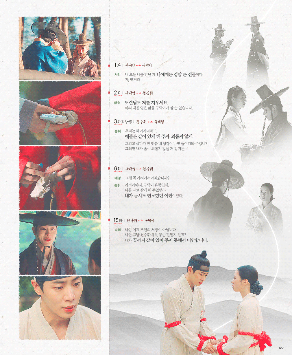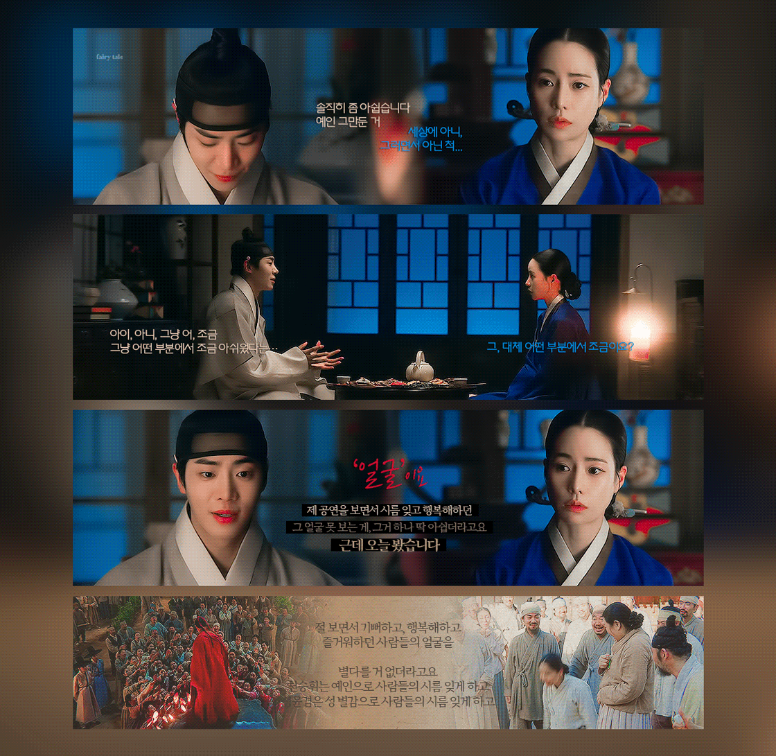 별 다를 거 없더라고요. 천승휘는 예인으로 사람들의 시름 잊게 하고 성윤겸은 성 별감으로 사람들의 시름 잊게 하고 왜 부인이 그렇게 사람들을 돕는지 이해가 됐습니다.