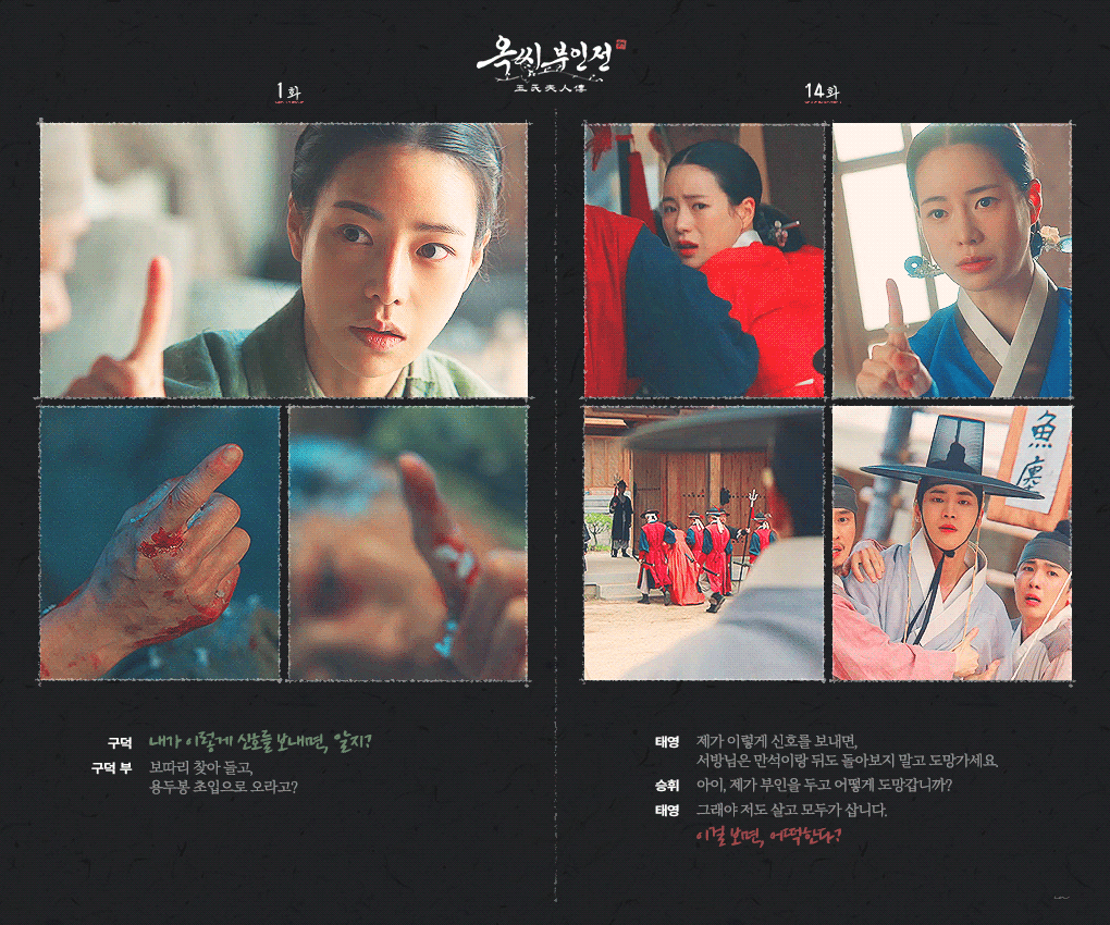 - 내가 이상황에서 도망치면은 부인이 문초를 받을 거 아니야. 홀몸도 아닌데 나 때문에 고신 받으면 어떡해 안 돼.