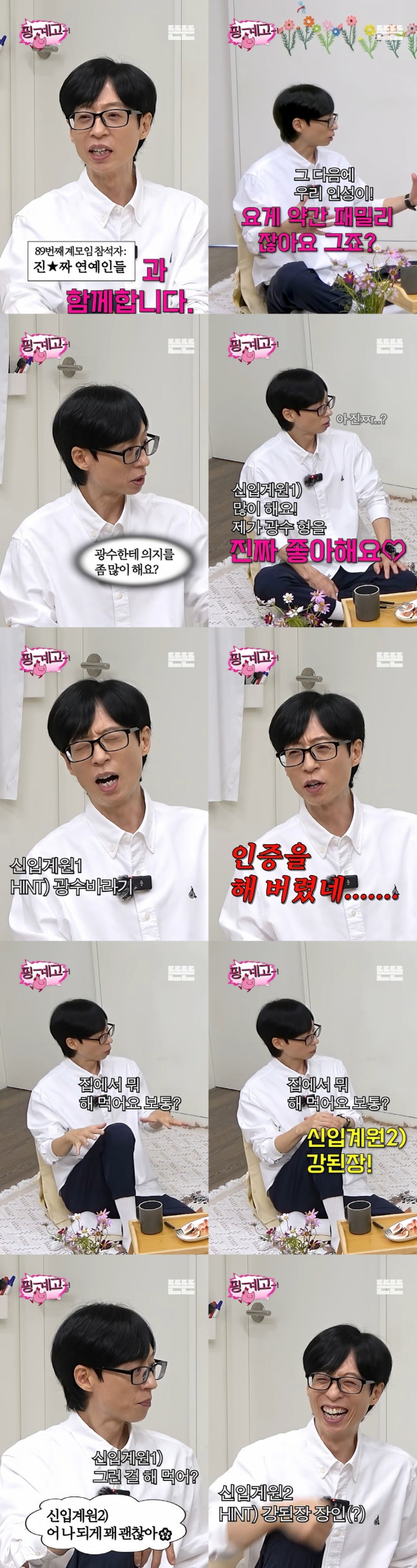 유재석은 김우빈에게 "(이)광수, (도)경수, (조)인성이 약간 패밀리 아니냐"고 묻자, 김우빈은 "광수 형한테 의지를 많이 한다. 제가 광수 형을 진짜 좋아한다"고 친분을 전했다. 이에 이광수와 친한 유재석은 "내가 이 말을 하지 말았어야 했는데, 인증을 해버렸네…"라고 농담해 웃음을 자아냈다.