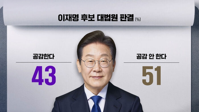 먼저 대법원이 지난 1일, 이재명 민주당 대선후보의 공직선거법 위반 사건을 유죄 취지로 파기환송하는 판결을 내린 데 대해서 어떻게 생각하는지 물었습니다.