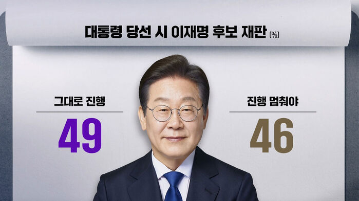 이재명 후보가 대통령에 당선될 경우, 진행 중인 형사재판은 어떻게 돼야 한다고 생각하는지도 물었습니다.