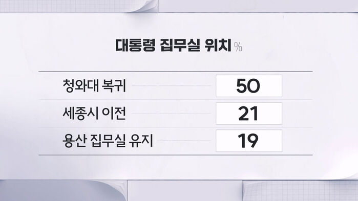'청와대로 돌아가야 한다' 50%, '세종시로 이전해야 한다' 21%, '용산 집무실을 유지해야 한다' 19%였습니다.