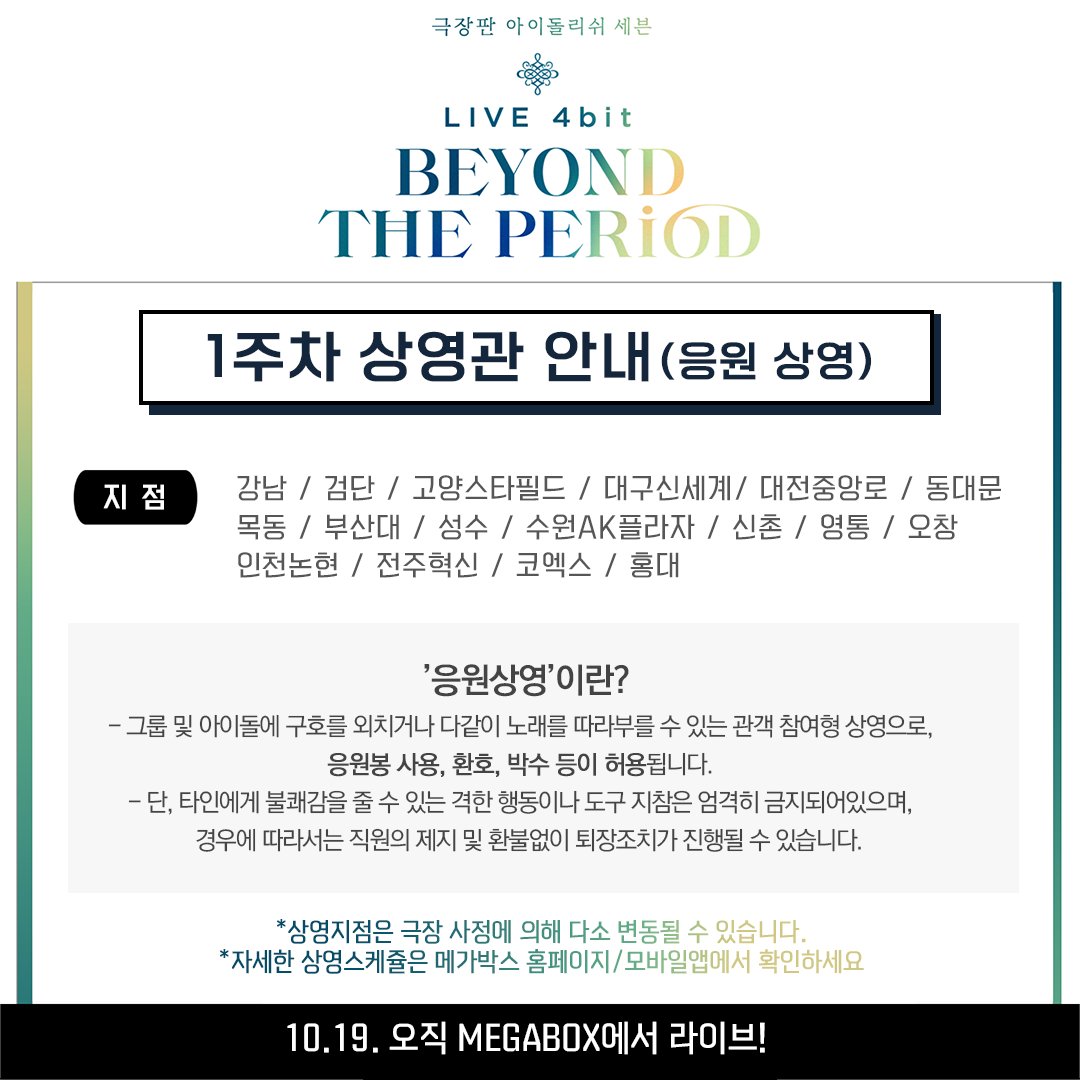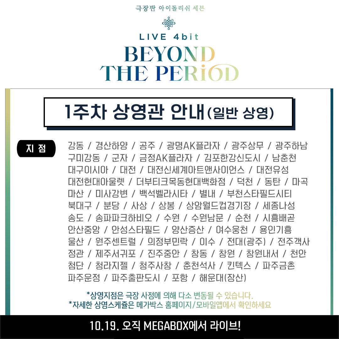 스퀘어 <극장판 아이돌리쉬 세븐: LIVE 4bit BEYOND THE PERiOD> 1주차 상영관 목록