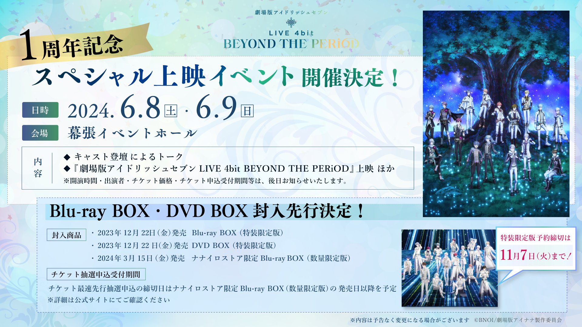 스퀘어 2024.06.08(토)~09(일) <극장판 아이돌리쉬 세븐: LIVE 4bit BEYOND THE PERiOD> 상영 1주년 기념 이벤트 개최