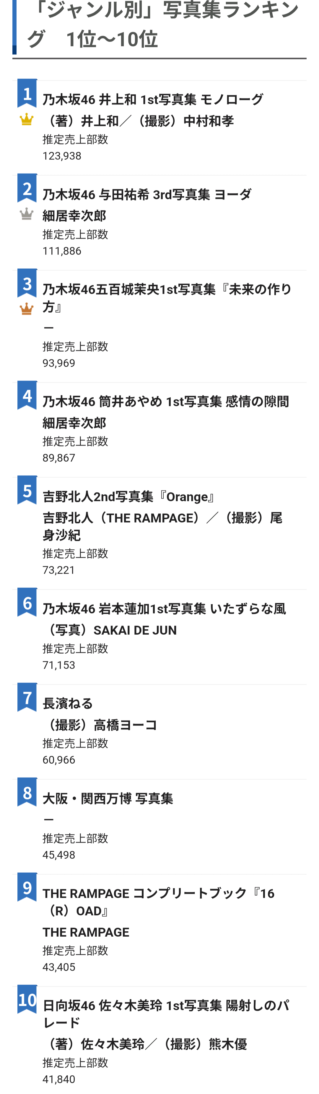 오리콘 연간 BOOK 랭킹 2025 사진집 1~10위