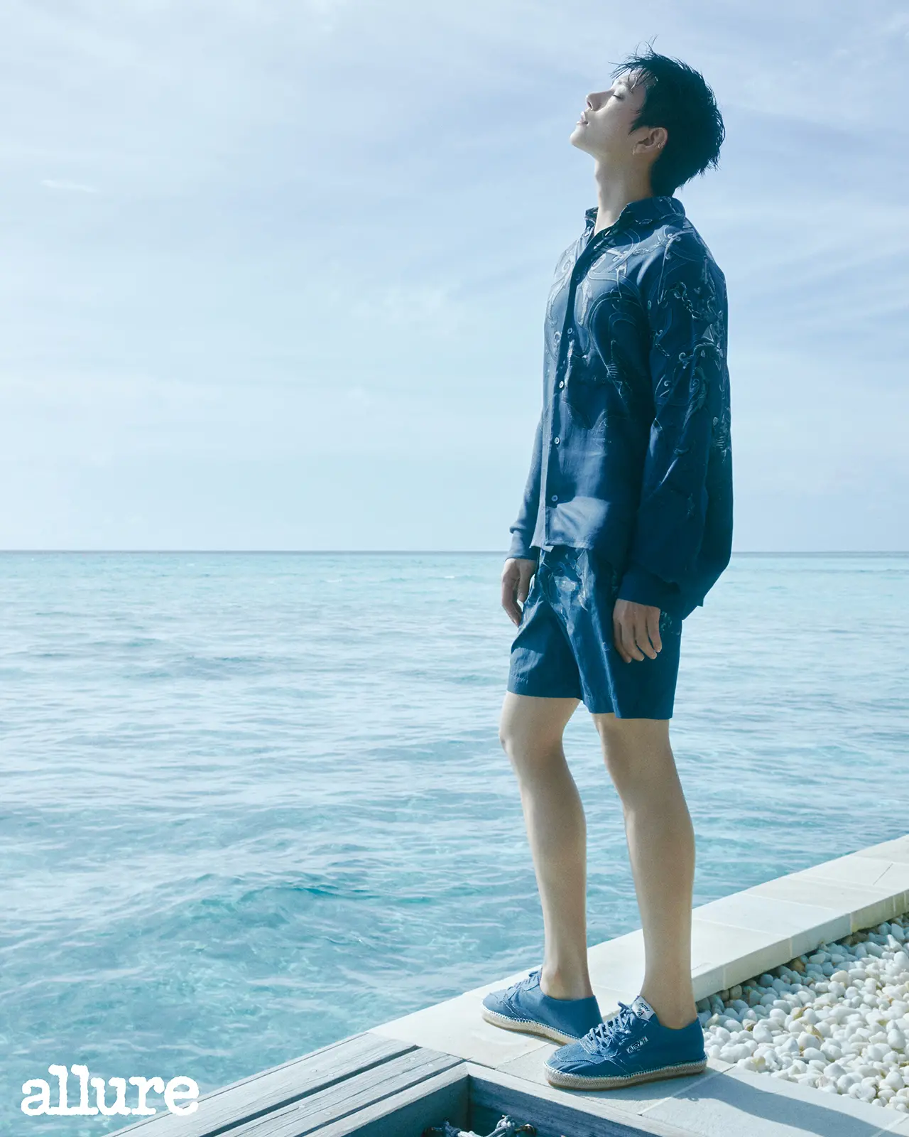 [@allurekorea] 민트색 바다와 이국의 꽃들이 가득한 몰디브에서 만난 조슈아. “서울에서 촬영하면 그날로 끝나잖아요. 해외 촬영은 몇 날 며칠 다 함께 지내며 인터뷰가 아닌 대화도 나눌 수 있죠. 그래서 해외 촬영을 좋아해요.”