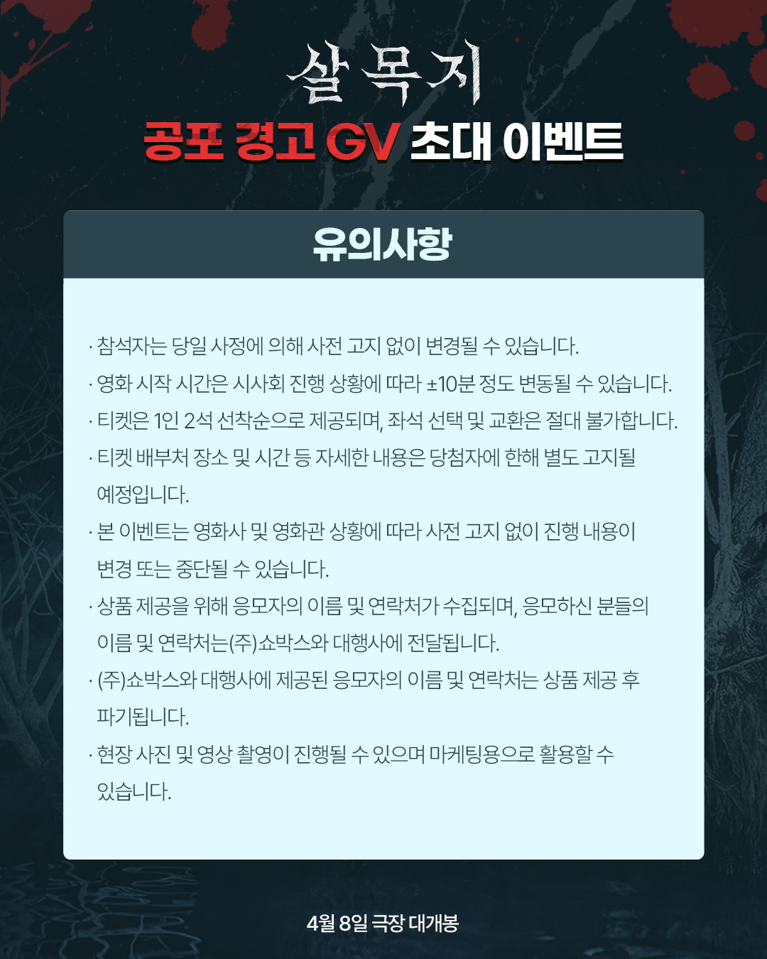 โญ ์˜ํ™” '์‚ด๋ชฉ์ง€' 2026.04.08(์ˆ˜) ๊ทน์žฅ ๊ฐœ๋ด‰