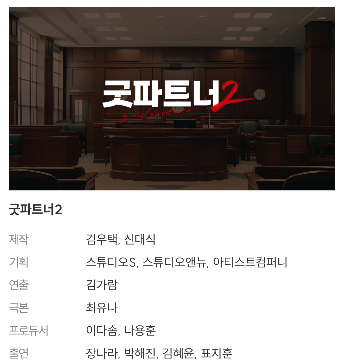 ⭐ 드라마 '굿파트너2' 촬영 예정