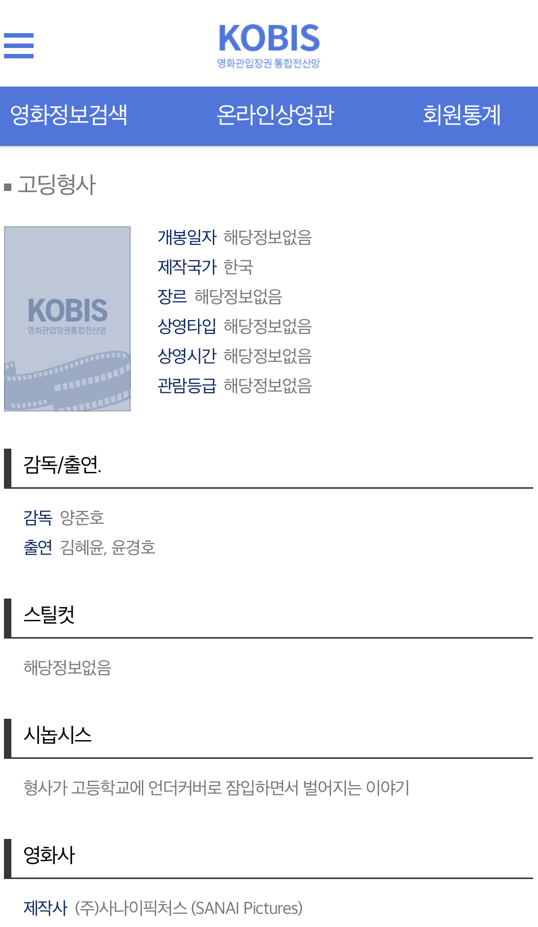 📸KOBIS(영화관 입장권 통합 전산망) 고딩형사 등록