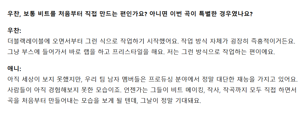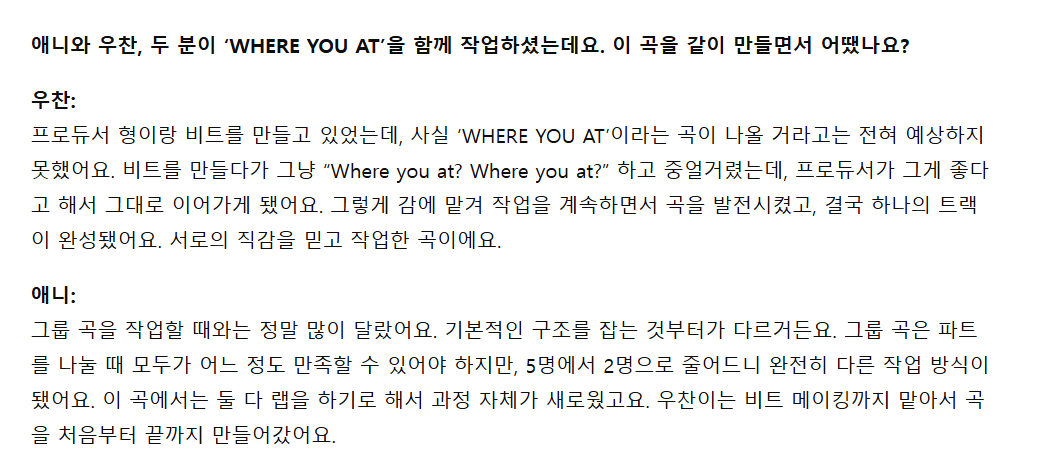 우찬) 해외 인터뷰 기사에 Where you at 비하인드&우찬이 작업방식 질문