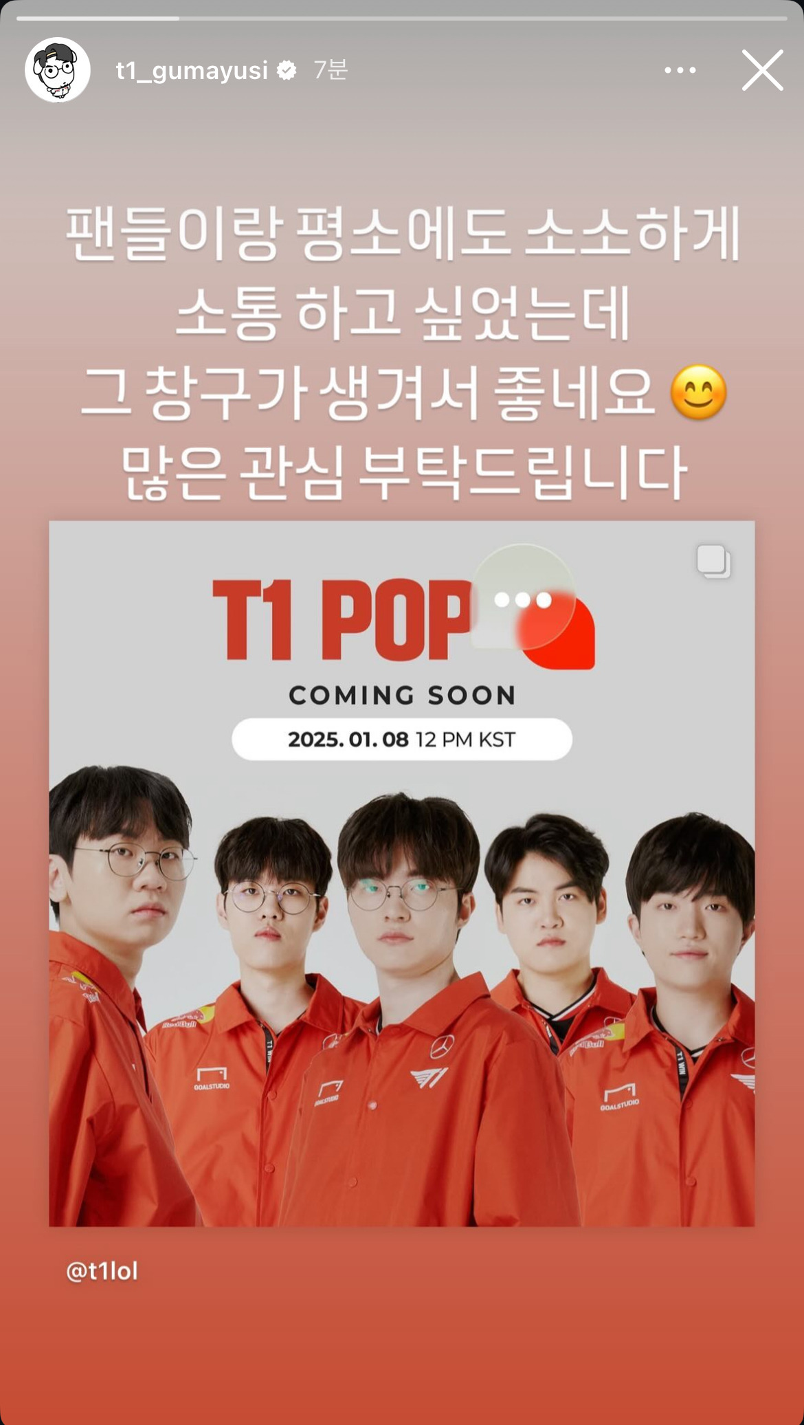 🐻 Gumayusi님의 새 글이 도착했어요 - 구마유시 스토리 업로드