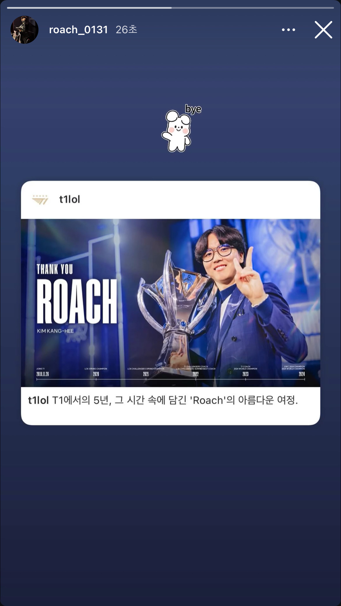 인스타 게시물: T1과 2년 재계약을 하게 되었습니다. 입소 일정 때문에 직접 소통하고 싶었는데 늦게나마 몇 자 남겨봅니다