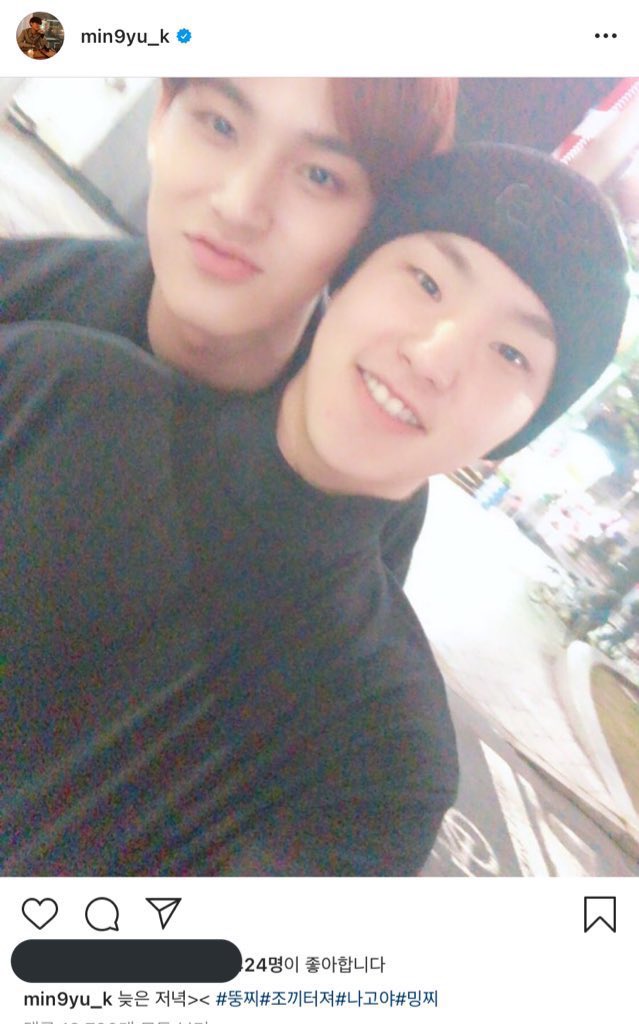 뿌뀨/뿌뀨뿌뀨 뿌=승관, 뀨=민규. 배틀트립 민규·승관 편에서 뿌뀨트립을 떠나며 뿌뀨뿌뀨라는 구호를 사용한 데서 유래한다. 연습생 때는 승관이 빠른 98이라 민규와 친구였으며 같은 학년으로 서울방송고등학교를 다녔다. 세븐틴이 데뷔하면서 빠른 년생 개념을 없애기로 해 형동생 사이가 되었으나, 반말도 섞어 쓴다. 왜 나는 김민규야?