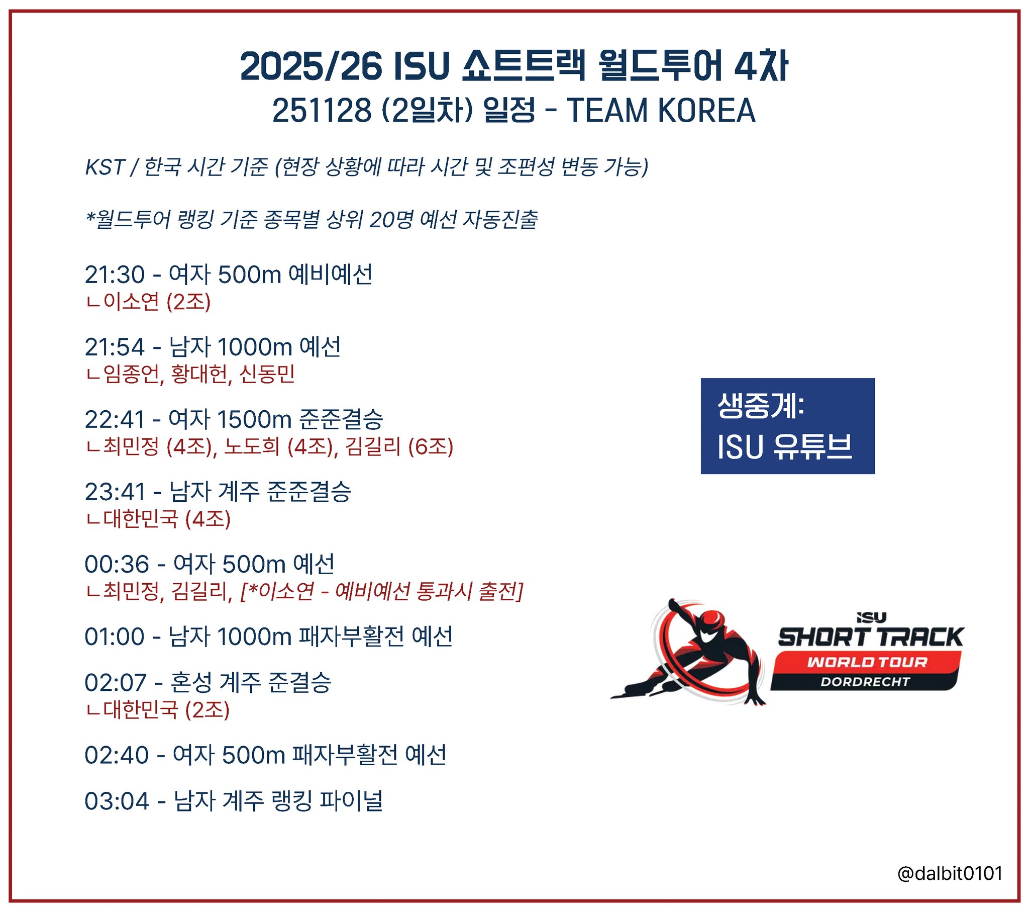 스퀘어 25/26 쇼트트랙 월드투어 4차 2일차 일정
