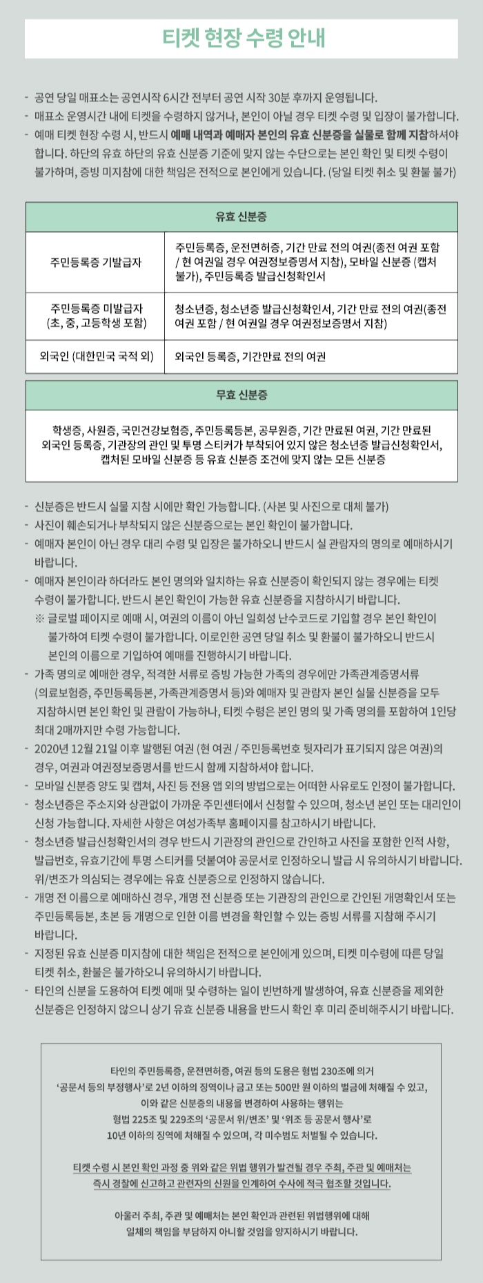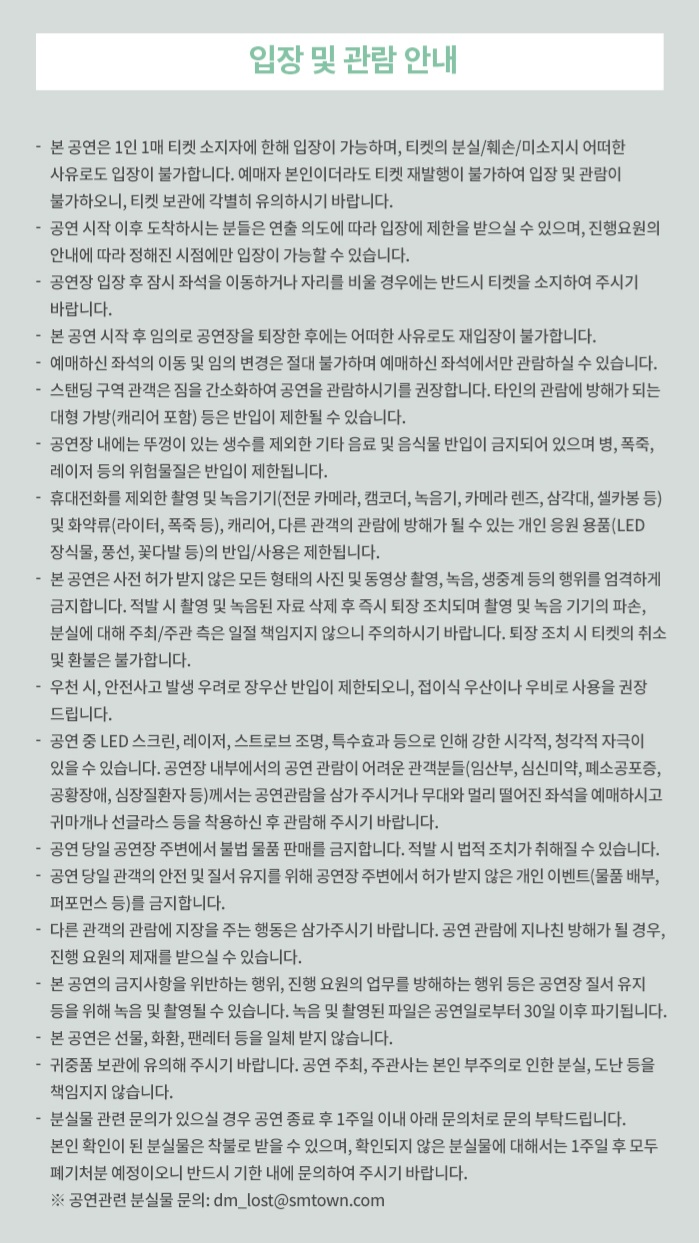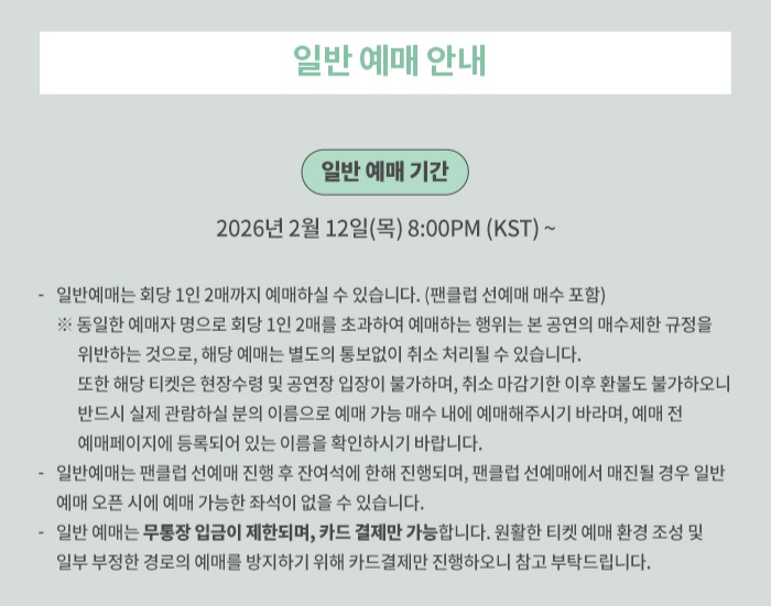 - 매수 제한: 회당 1인 2매 (팬클럽 선예매 회당 1인 1매 포함)