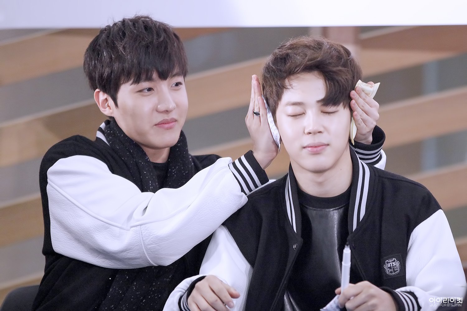 낫투데이 뮤비 찍는데 날씨가 너무 추우니 지민이 겉옷 잠궈주기