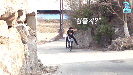 자기보다 큰 형아 업고 오르막길 올라가는 지민