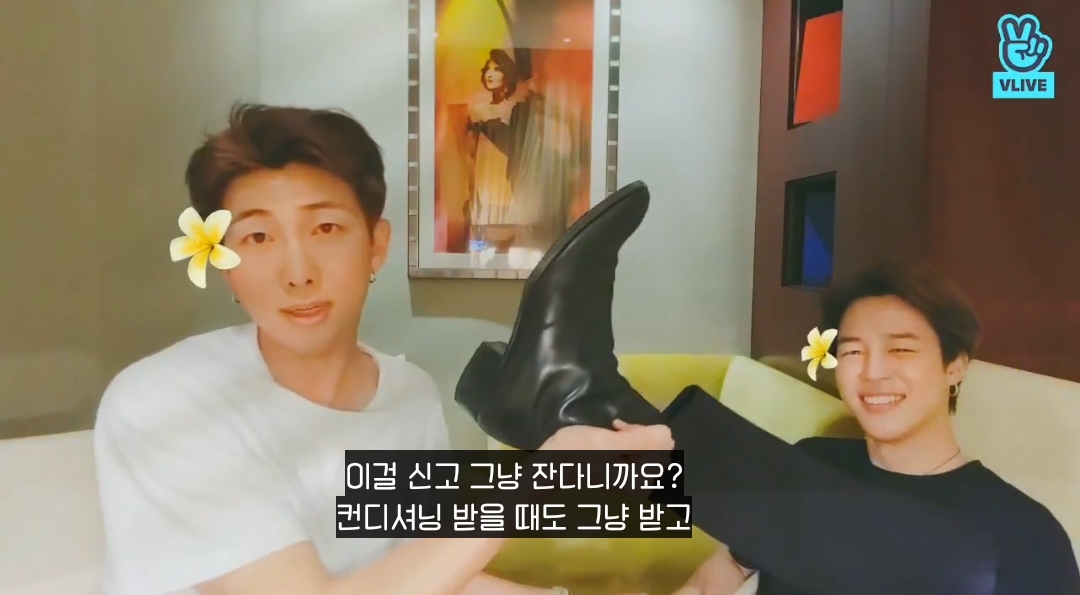 첼시부츠 신고 컨디셔닝 받고 있던 지민이 신발 벗겨주고 간 알엠