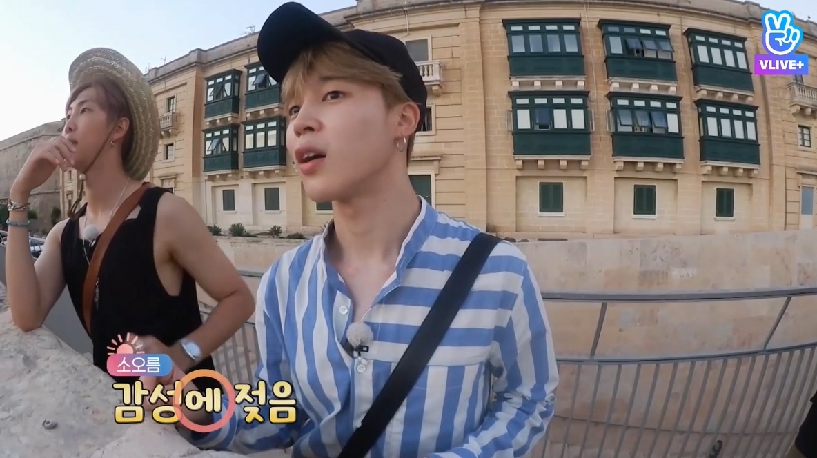 개인사정으로 여행에 조금 늦게 합류한 뷔에게 영상편지 보내는 방탄