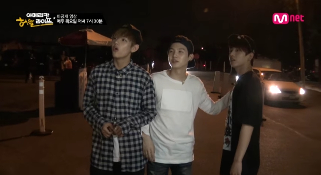 미국에서 불꽃놀이 구경하던 슈가 뷔 정국