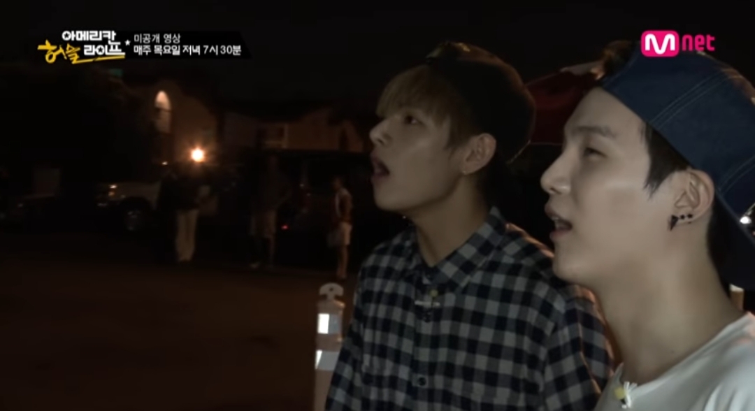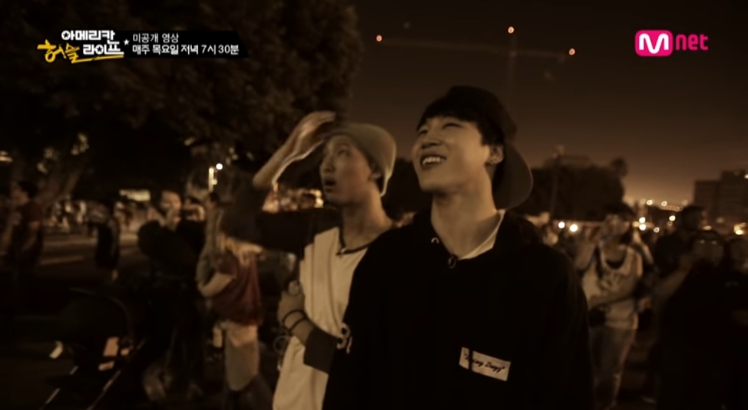 미국에서 불꽃놀이 구경하던 슈가 뷔 정국