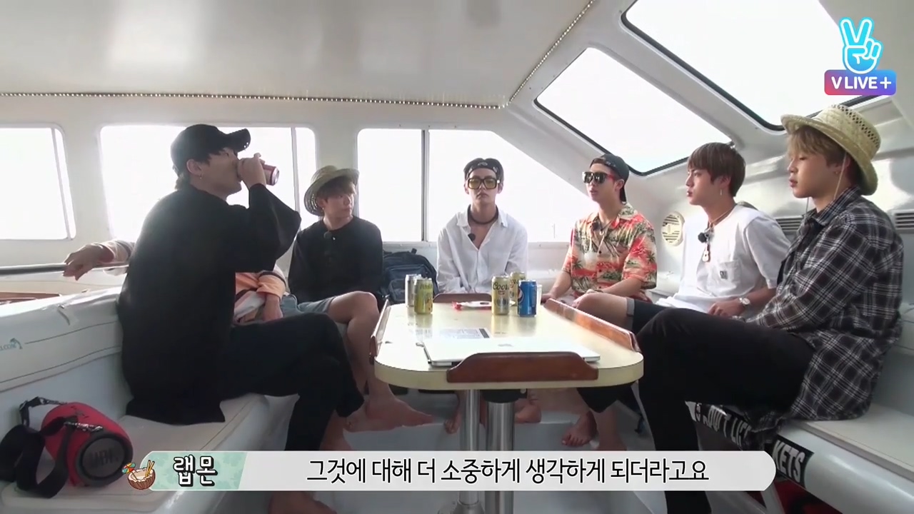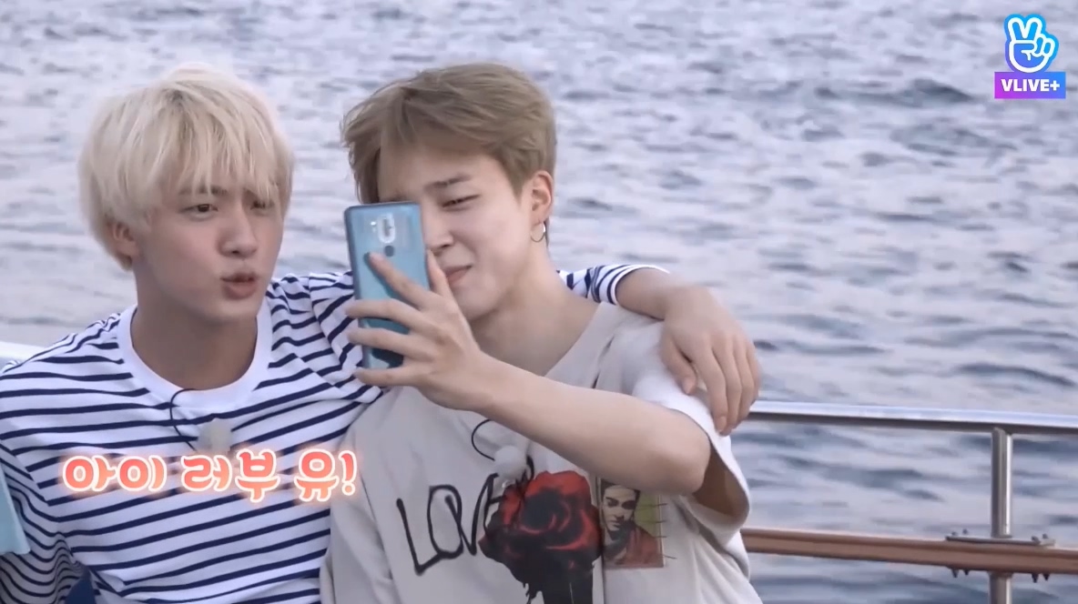 개인사정으로 여행에 조금 늦게 합류한 뷔에게 영상편지 보내는 방탄