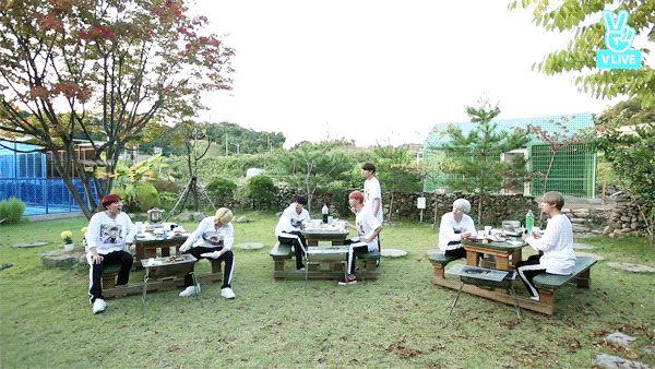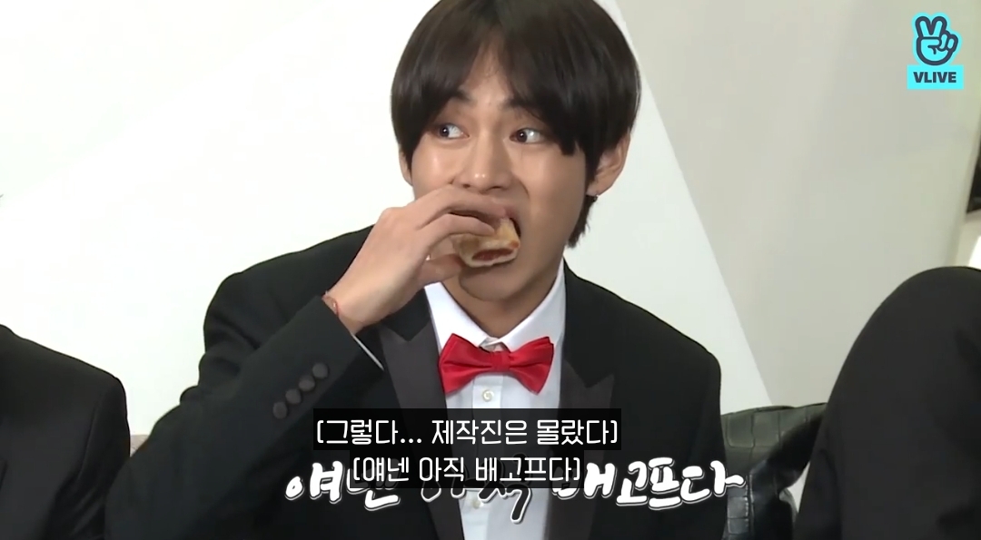애교3종 끝나자마자 슈가형 지령 받고 고기 받으러 출발하는 뷔ㅋㅋ