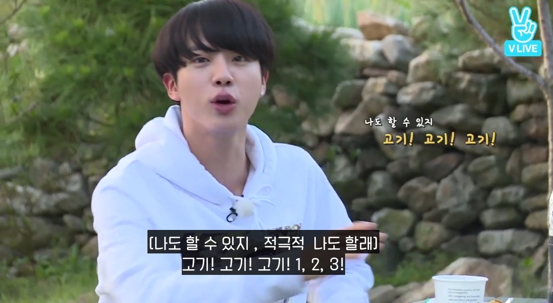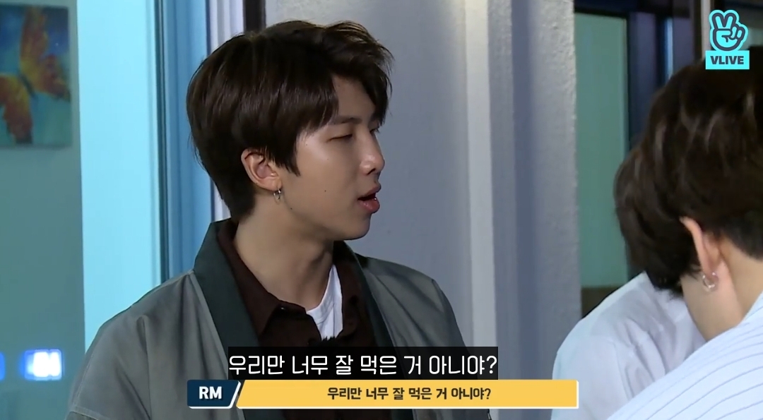 모두를 초토화 시킨 알엠의 애교타임이 끝나고 맏형은 얼른 고기 받아감