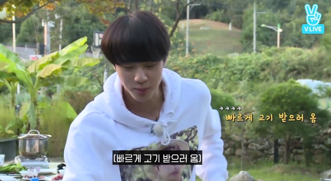 고기 굽기 시작하는 방탄