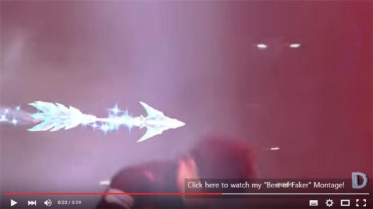 ◇ 이상혁의 앞구르기 실제 영상과 LoL 애쉬의 마법의 수정화살의 영상을 편집한 장면(사진=유투브 영상 캡처).