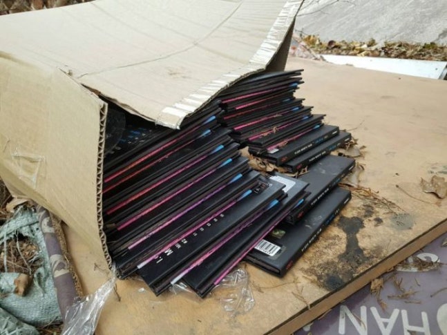 포토카드만 빼고 버려진 한 아이돌그룹의 앨범들 (출처=온라인 커뮤니티)