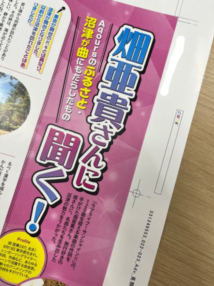 여기에 러브라이브 시리즈 시작부터 수백곡을 써내려온 전담 작사가 하타 아키의 누마즈 여행담까지 수록.