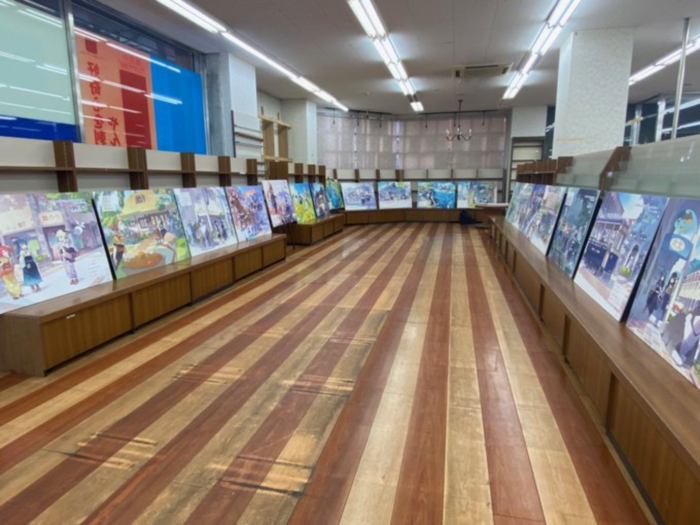 한편 책이 없어도 마루산 서점 한켠에 수십개 일러스트들을 전시해서