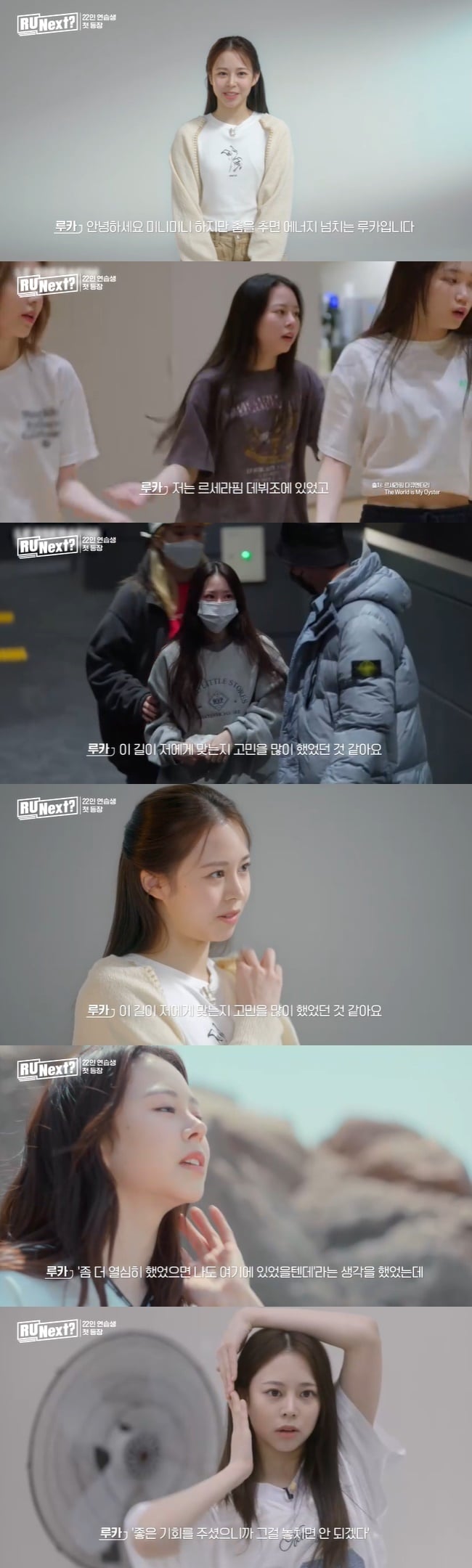루카는 르세라핌 데뷔조였으나 최종 탈락한 연습생이다. 루카는 “미니미니하지만 춤을 추면 에너지 넘치는 루카다”라며 “르세라핌 데뷔조에 있었고 거기서 나가게 됐을 때 이 길이 저에게 맞는지 고민을 많이 했다”라고 소개했다.