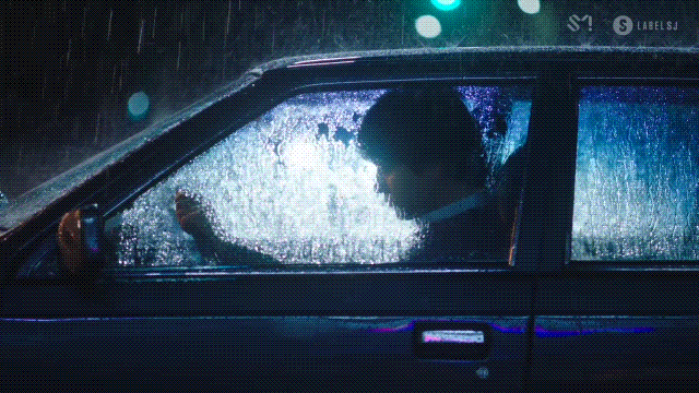 차에서 슬프게 노래부르는 규현과