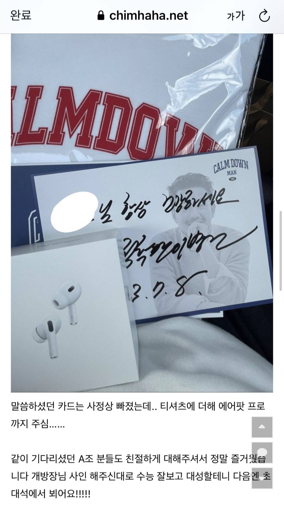 침착맨 팬사인회 한정 컬러 티셔츠와 에어팟 프로2