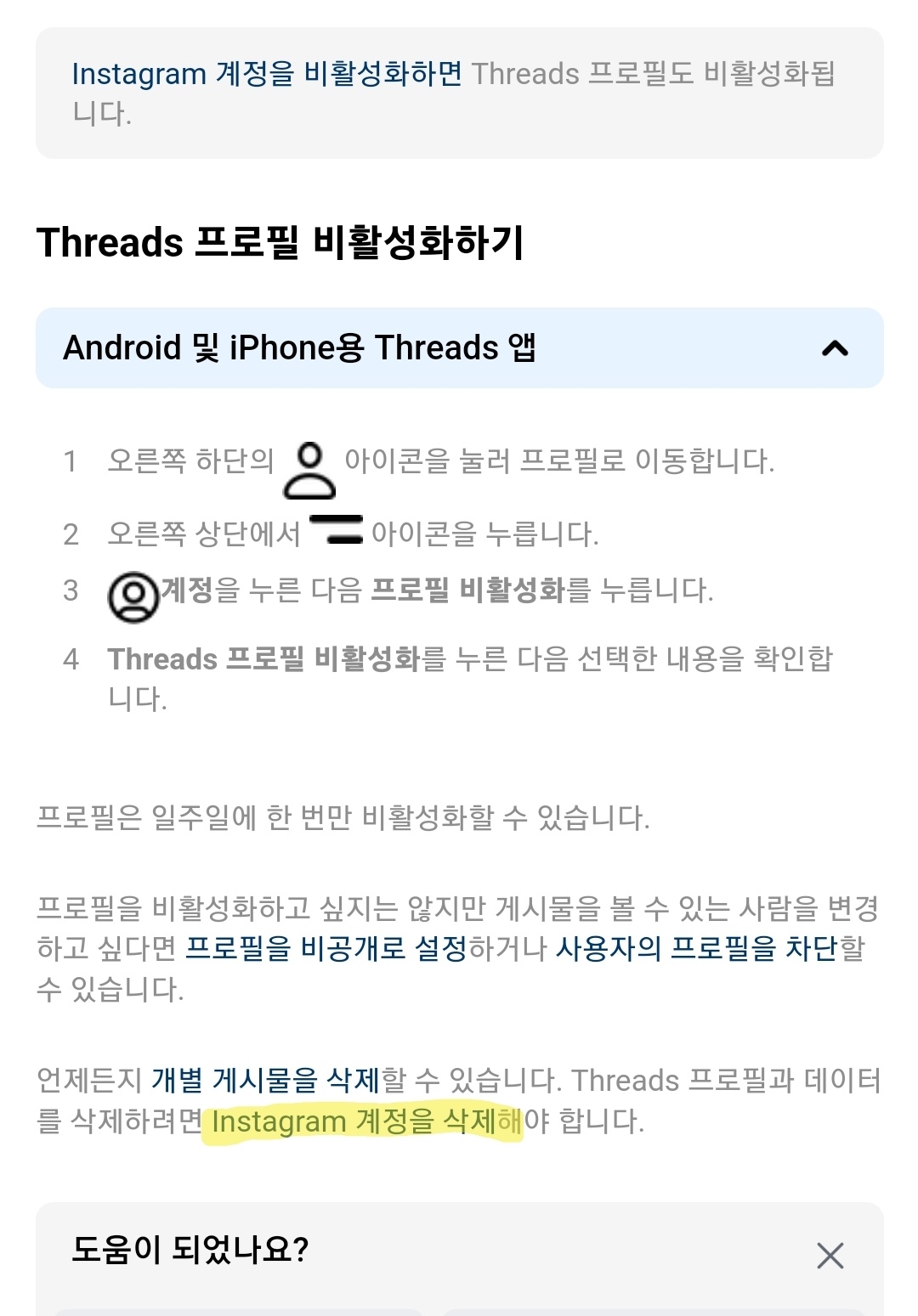스레드 계정 삭제 하려면 인스타그램 계정도 삭제 해야함