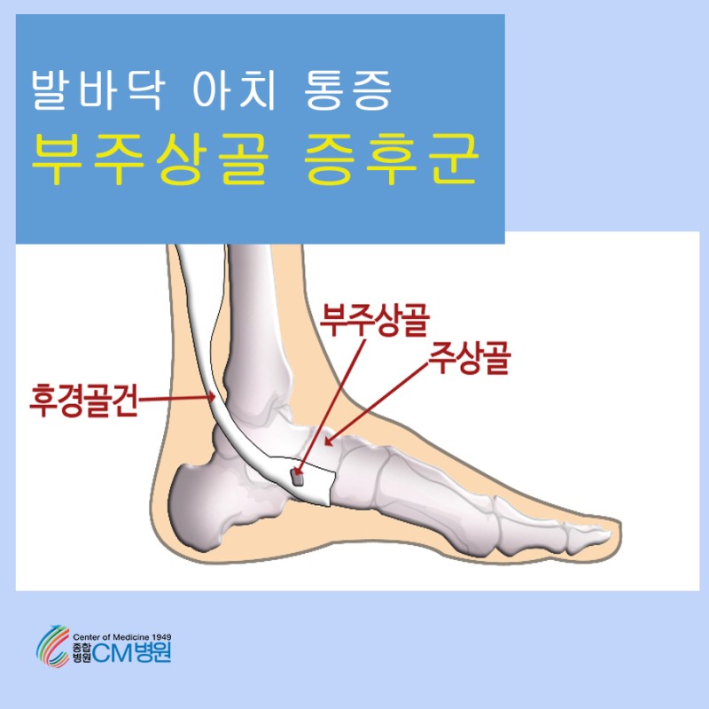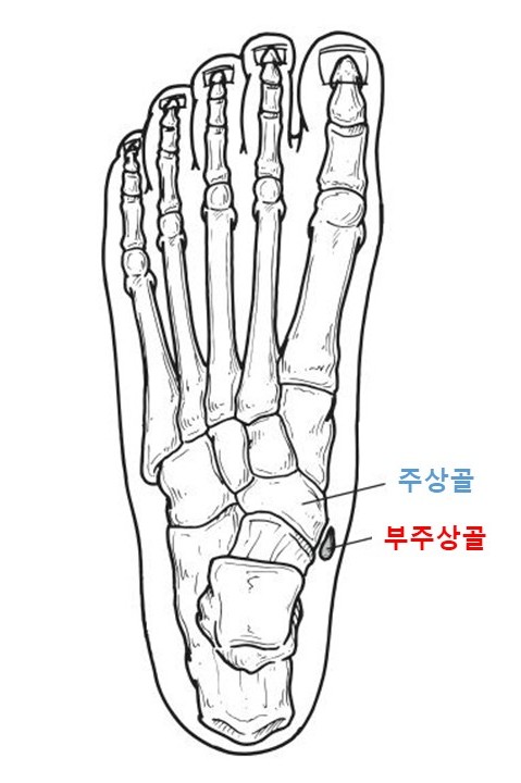 부주상골은 없어도 되는 뼈, 액세서리 뼈라고 부르기도 하며 특별히 치료해야 되는 것은 아니지만 주상골과 부딪혀 통증을 유발하는 부주상골 증후군이 나타날 경우 치료 대상이 됩니다.