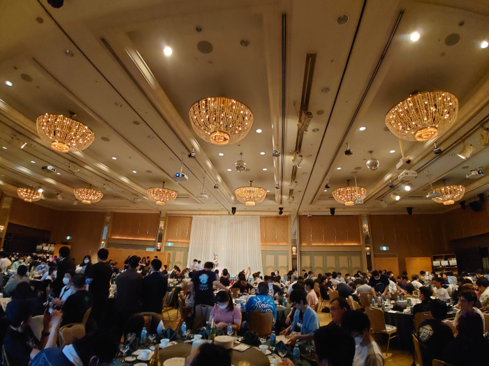 수백명 규모의 리버사이드 호텔 대연회장.