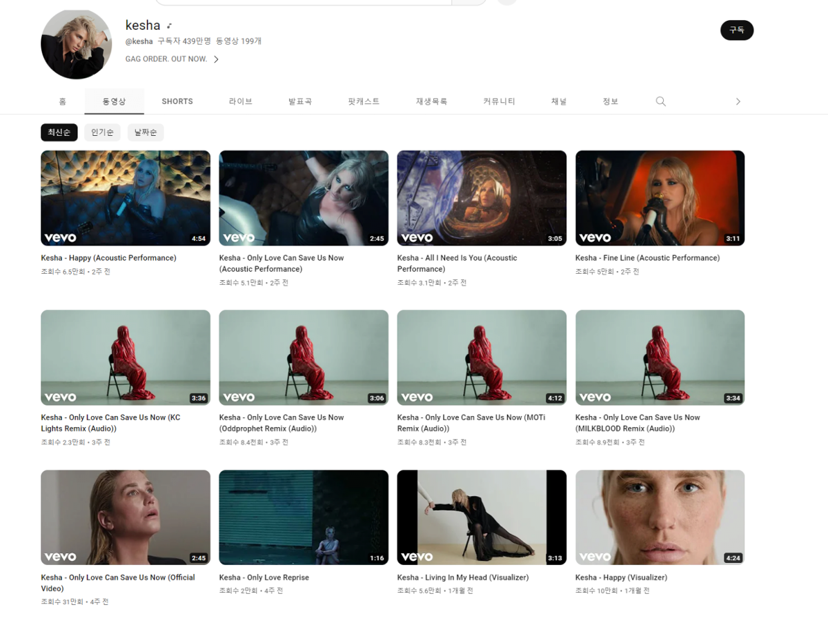 케샤의 유튜브는 평균 10만도 못미치는 조회수에 케샤는 인기를 모두 잃어버림.